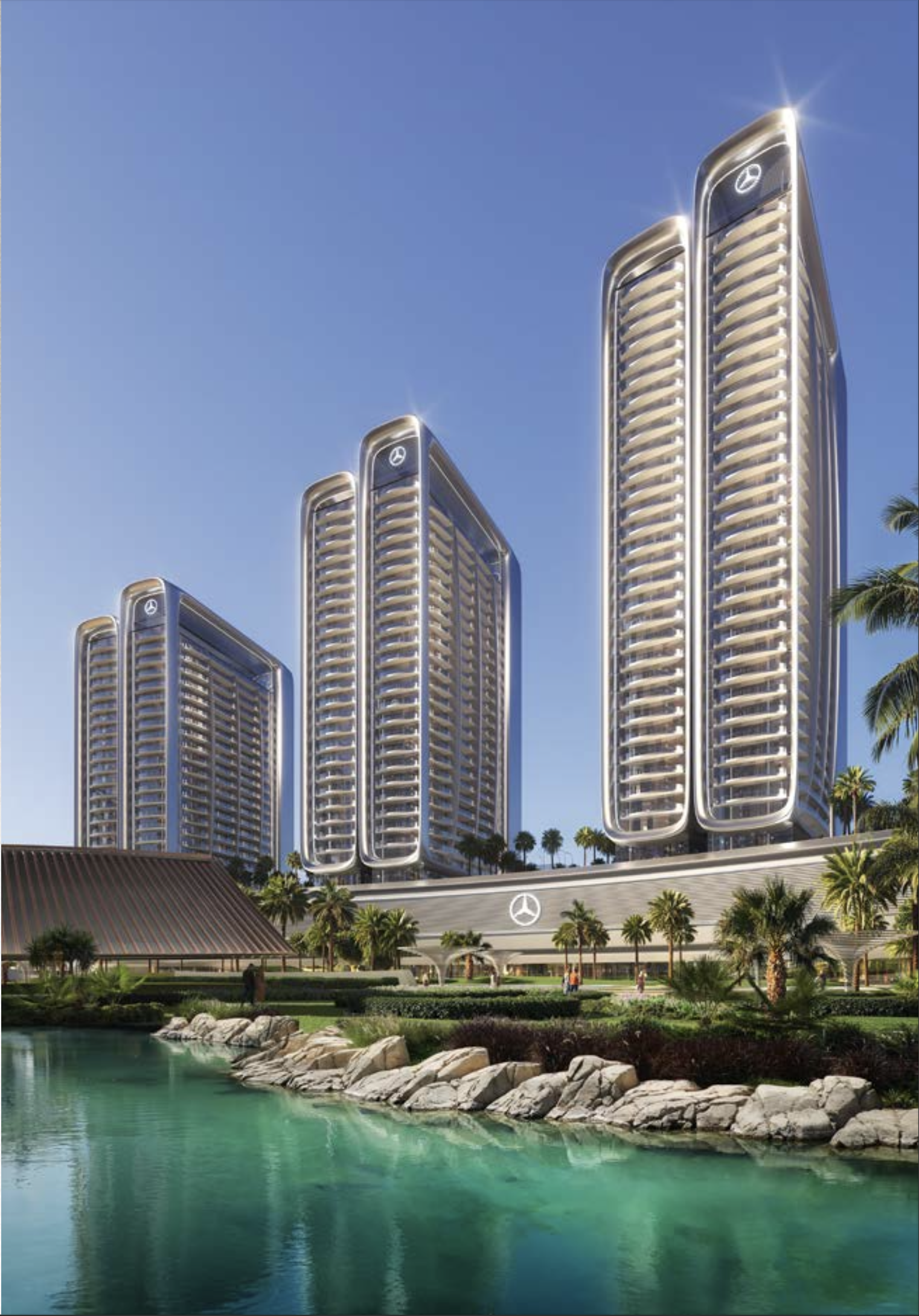 Das Projekt umfasst hochwertig gestaltete Apartments und Penthäuser mit großzügigen Grundrissen, edlen Materialien und intelligenten Wohnkonzepten. Die Architektur folgt der Mercedes-Benz Designphilosophie „Sensual Purity“ und steht für zeitlose Eleganz, Innovation und Qualität.